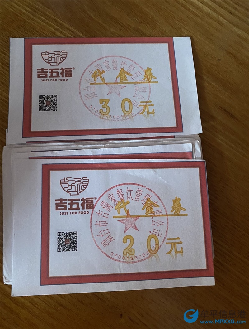 吉五福的餐券,8折出售450块钱的餐券。一共就这些,家里没有人愿意吃。牟平面交。