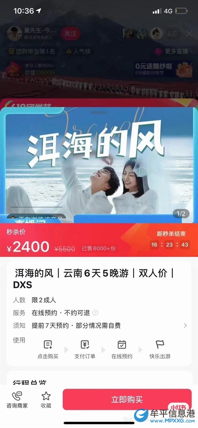 在主播直播间拍了一个云南双人游