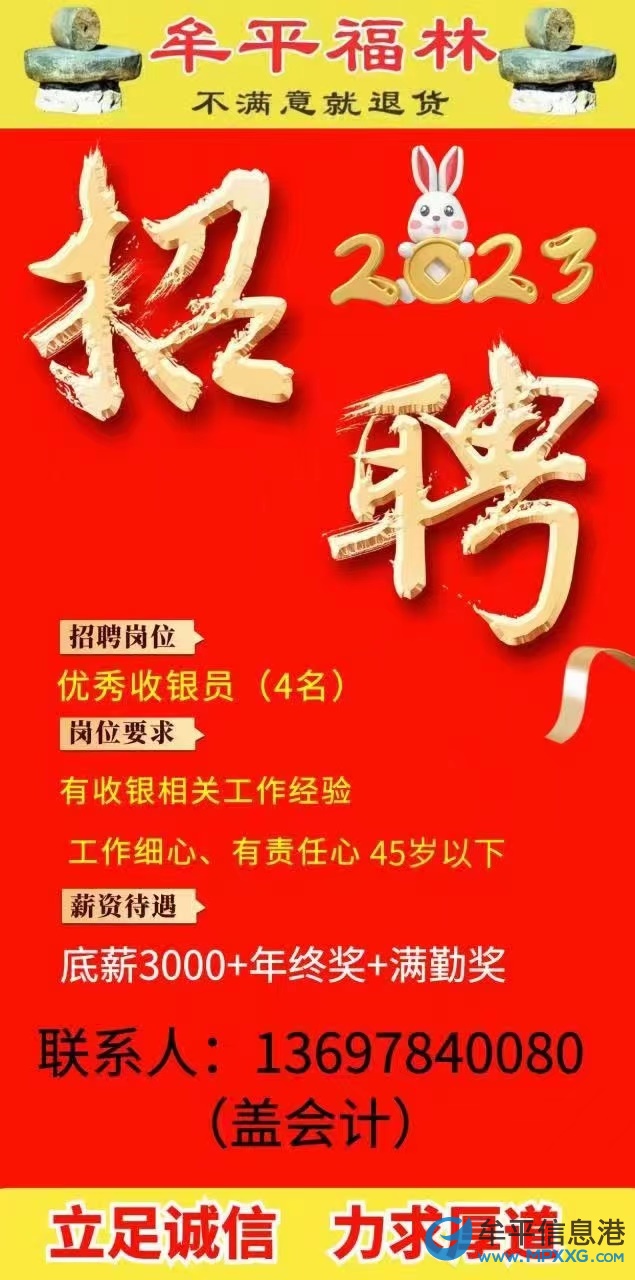 牟平福林鞋服成招聘收银员