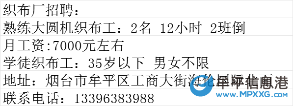 联系我时,请说明在牟平信息港看到的,谢谢!