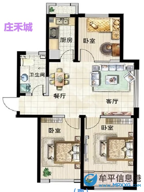 庄禾城电梯好楼层102平三室全明户型出售