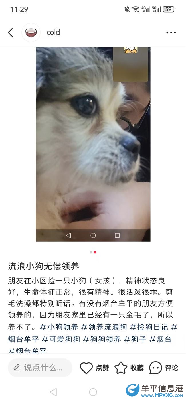 在小区捡到一只小母狗 ,特别听话无疾病,烟台牟平找领养