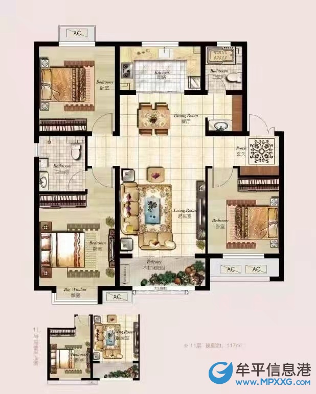 120平 毛坯 3室2厅2卫