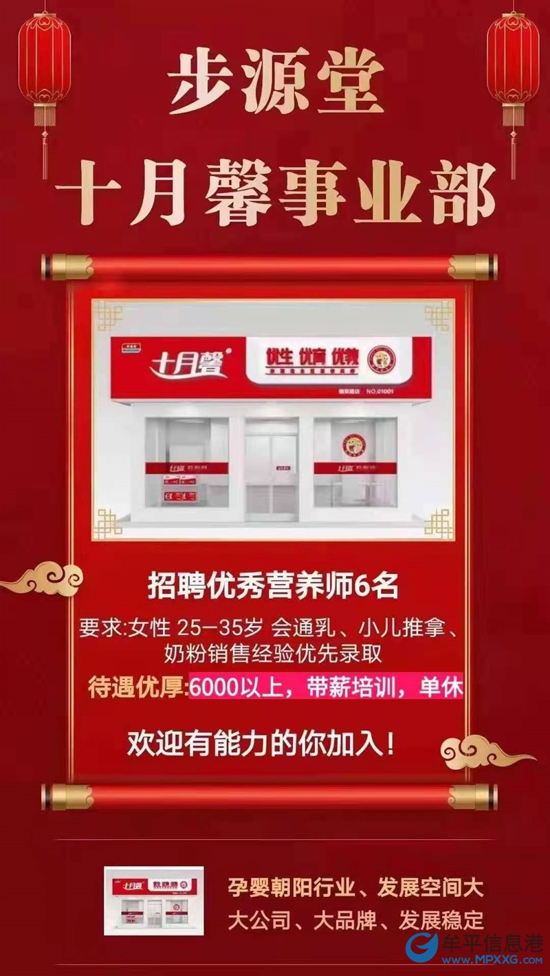 步源堂牟平分公司招聘营养师5名,热爱这份行业的,催乳师,育婴师,有过孕婴.奶粉销售经验者优先!